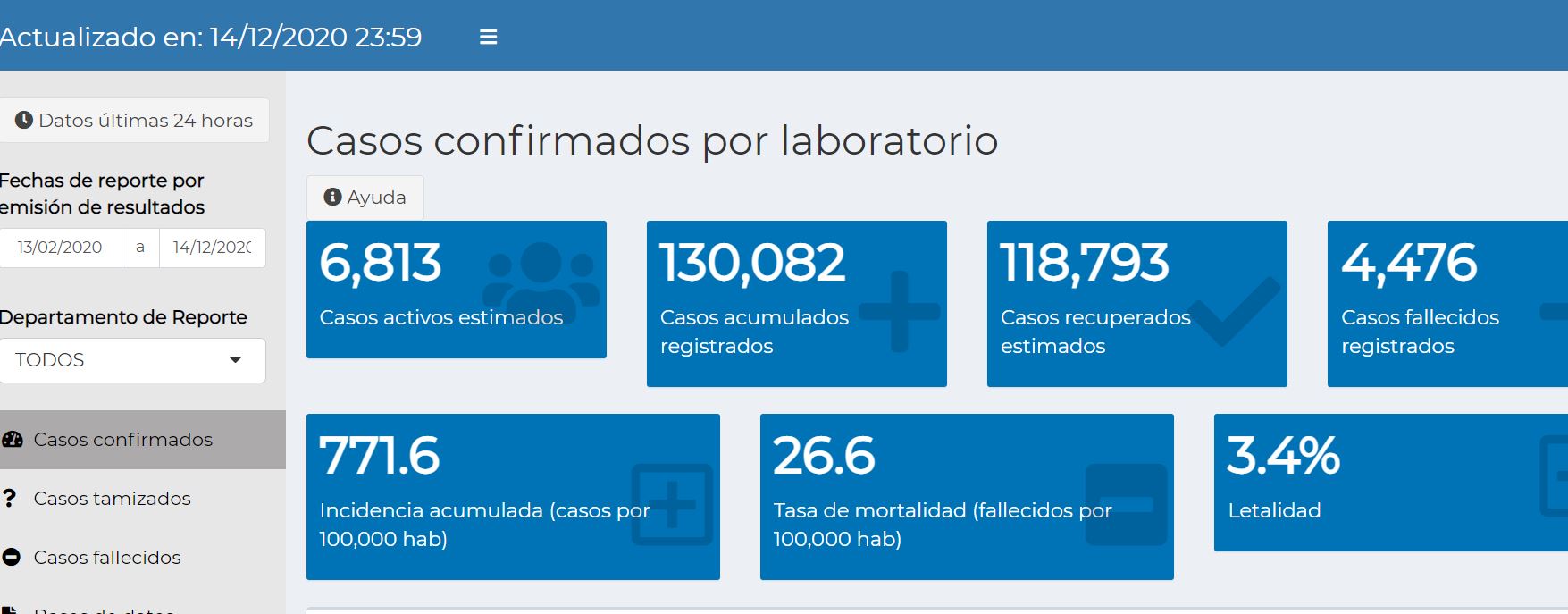 Esta última actualización corresponde al 14 de diciembre de las cero a las 23.59 horas.