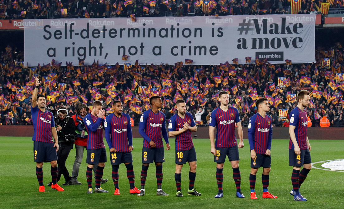 En esta ocasión, como en anteriores, es muy probable que se puedan ver en las gradas enormes pancartas con reivindicaciones independentistas. Se espera, más concretamente, que se pueda leer uno de los últimos lemas del separatismo catalán: #SpainSitandTalk.